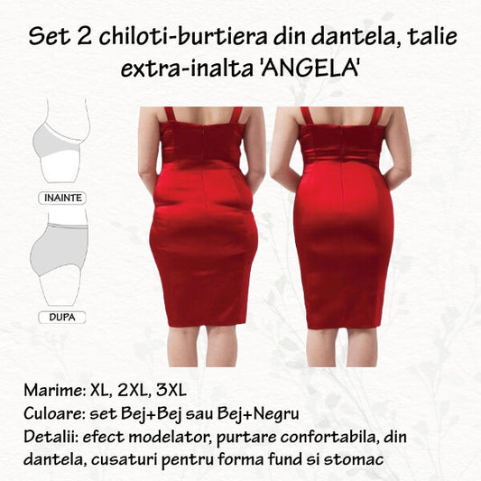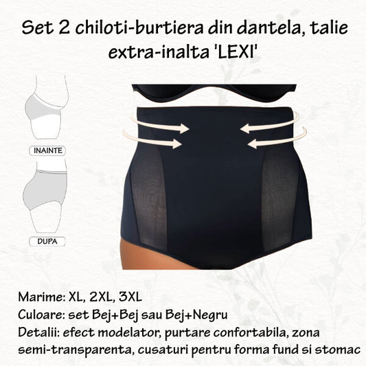 PRET PROMO- Set 2 chiloti burtiera din dantela 'ANGELA' talie extra inalta, marime XL