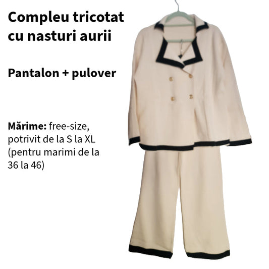 SUPER PROMO 98 LEI! Compleu crem din tricot cu nasturi aurii - pantaloni și pulover