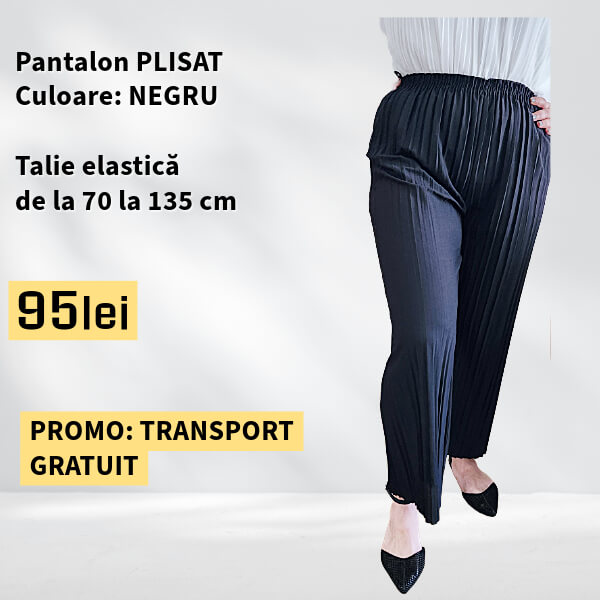 PANTALONI PLISATI culoare NEGRU, talie elastica pana la 135 cm